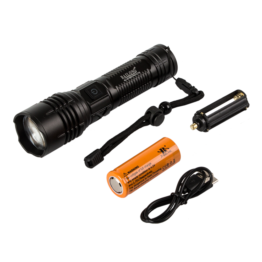 Taktiskā LED lukturis Bailong M1682 ar zoom, power bank funkciju