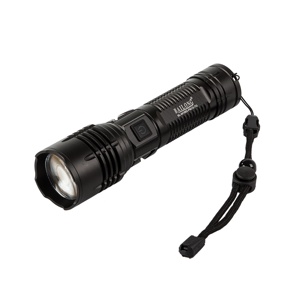 MILITARY TACTICAL TORCH WITH CREE LED PM10-TG ZOOM MODEL M1682 POWER BANK FUNCTION FROM THE RENOWNED BAILONG® BRAND