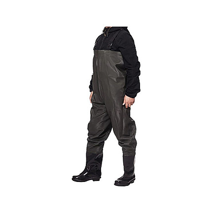 Makšķernieku ūdensnecaurlaidīgas bikses ar zābakiem un regulējamām lencēm, izmērs 45,...