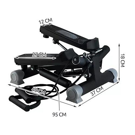 - SPECIFICATION – material: steel, others: PP + aluminium + PA + PVC; swivel: yes; anti-slip feet: yes; max. load: 120kg; rope length: 95cm; dimensions: 40 x 37 x 18 cm; stepper weight: 6.8 kg; weight with packaging: 7.45 kg.