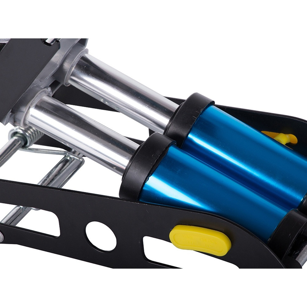 Благодаря использованию двух цилиндров вы накачаете колесо в 2 раза быстрее и потеряете в 2 раза меньше энергии, а максимальное давление насоса составляет 150 PSI/10 бар. Насос прочен и устойчив к механическим повреждениям, а сбоку у него есть замок, предотвращающий случайное открытие насоса.