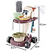 - TRANSPORT TROLLEY WITH ERGONOMIC HANDLE - trolley on four wide wheels , made of high quality PP material , has been designed to be easy to move. Ergonomic, wide handle makes it easier for children to drive the stroller even while playing on the move. On two shelves you can set different set elements: a bucket with a sieve for pressing the mop on the lower shelf and a bowl, sprayer, squeegee and a bar of soap on the upper shelf. Thanks special holes , the trolley can hold a round duster, sponge and mop, providing easy access to all tools. On the sides of the trolley there are two hooks for hanging a microfiber cloth.