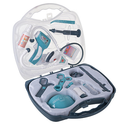 - Богатый набор из 13 аксессуаров - стетоскоп, термометр, шприц, спрей, пластырь, очки, пульсометр, карта пациента, таблетки и многое другое - полный медицинский кабинет в небольшом чемодане.