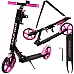 Складной городской самокат для детей с большими колесами диаметром 200 мм, легкий и с тормозом, черного и розового цвета — идеально подходит для городских поездок!