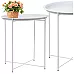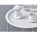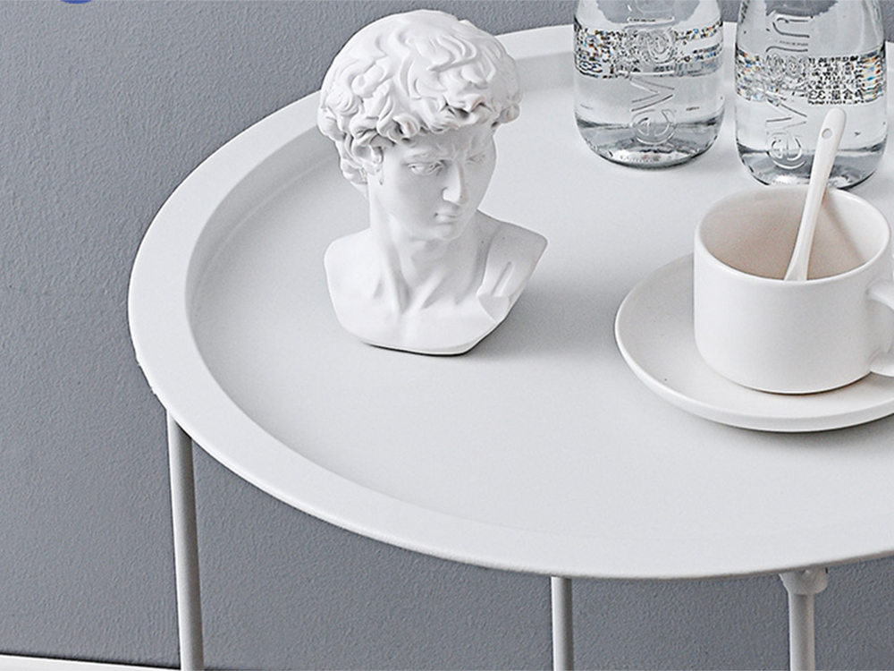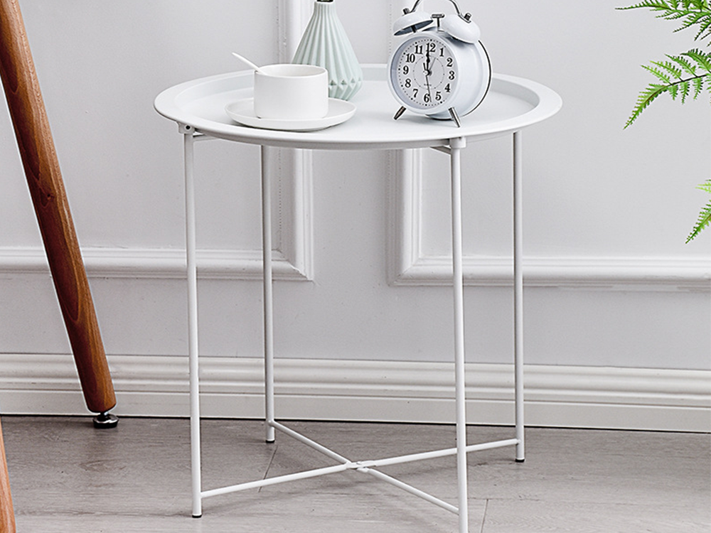 Round metal folding coffee table with tray for balcony terrace loft white
