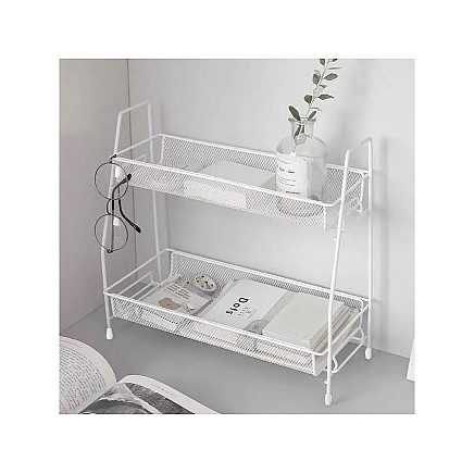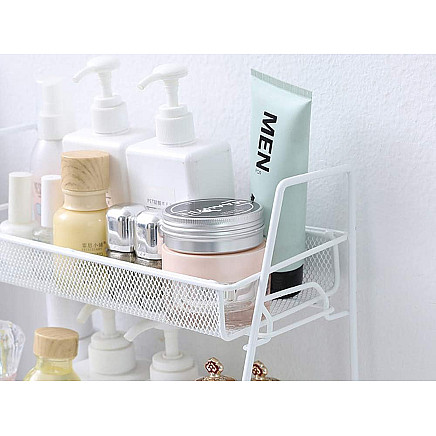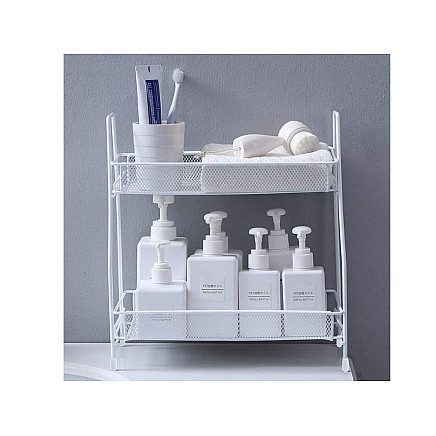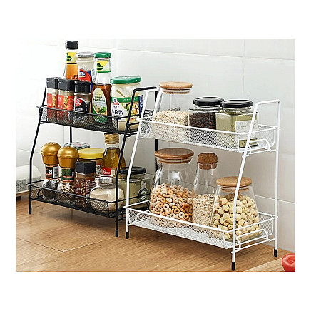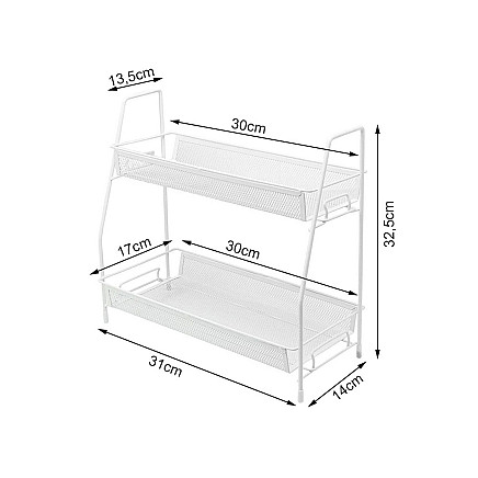 УНИВЕРСАЛЬНОЕ ПРИМЕНЕНИЕ - НЕ ТОЛЬКО ДЛЯ КУХНИВ ванной комнате органайзер прекрасно подойдет для хранения косметики, парфюмерии, аксессуаров для макияжа и других гигиенических принадлежностей. Благодаря двухуровневой конструкции вы сможете легко упорядочить все свои продукты и всегда иметь их под рукой. Металлическая конструкция устойчива к воздействию влаги, что гарантирует длительное использование без опасения коррозии.