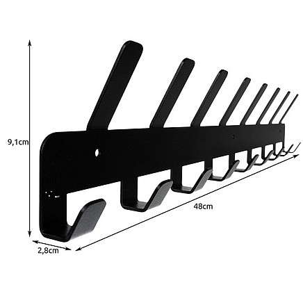 - СПЕЦИФИКАЦИЯ - цвет: черный; материал: сталь с порошковым покрытием; 17 крючков; размеры: 9,1 х 48 х 2,8 см; вес: 0,426 кг; вес в упаковке: 0,511кг.