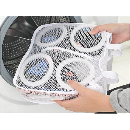 Это практичный аксессуар, который помогает защитить стиральную машину и обувь во время стирки.