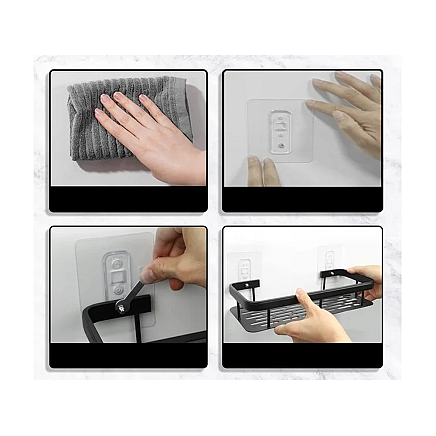 Самоклеящаяся система крепления крючков позволяет быстро и неинвазивно прикрепить полку к любой гладкой поверхности. Это делает установку простой и не требует сверления отверстий в стенах.