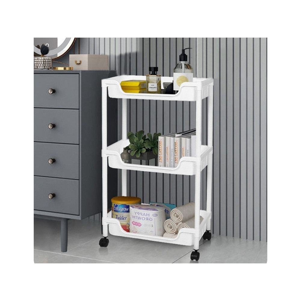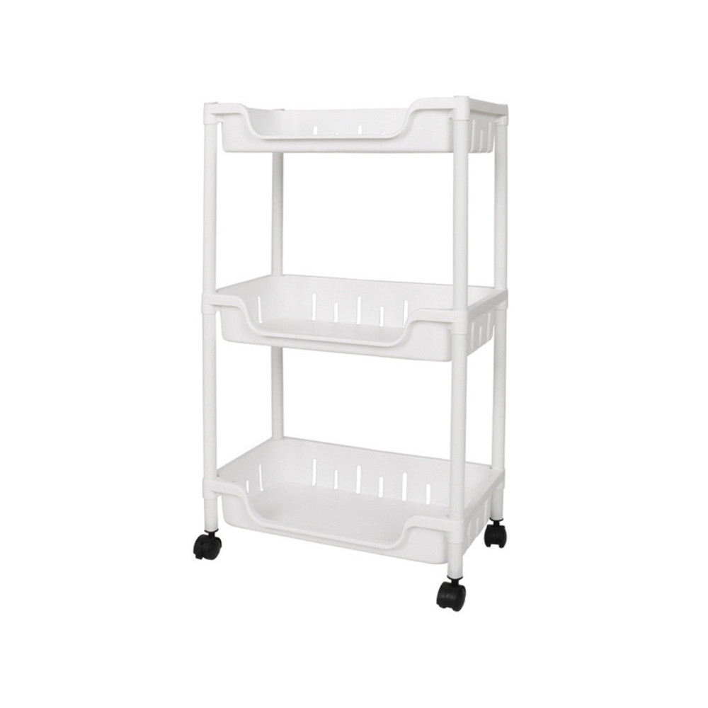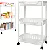 Bathroom shelf kitchen cabinet mobile bookcase on wheels 3 levels hooks