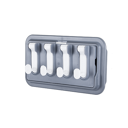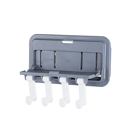 Вешалка крепится с помощью клея Она оснащена 4 крючками.