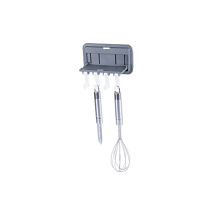 Вешалку можно развернуть, чтобы получить дополнительную полку для кухонных принадлежностей.