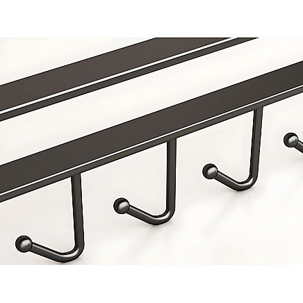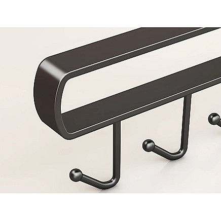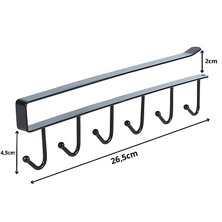 ФУНКЦИОНАЛЬНОСТЬ И УНИВЕРСАЛЬНОЕ ИСПОЛЬЗОВАНИЕВешалка имеет 6 прочных крючков , идеально подходящих для подвешивания ложек, шпателей, ножей, кухонных перчаток или половников. Простая установка без сверления позволяет закрепить ее под полкой или шкафом. Матовый черный цвет сочетается с большинством современных кухонь и аксессуаров.