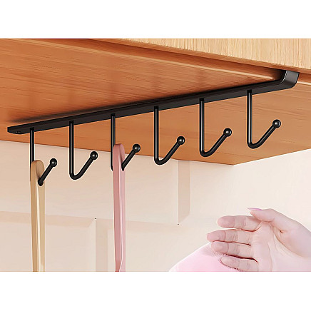 КУХОННАЯ ВЕШАЛКА ЧЕРНЫЙ МЕТАЛЛ 6 КРЮЧКОВ ДЛЯ ПОСУДЫ КРЮЧКИ КУХОННАЯ ВЕШАЛКА ПОД ШКАФОМ - ИДЕАЛЬНОЕ РЕШЕНИЕ ДЛЯ ВАШЕЙ КУХНИ