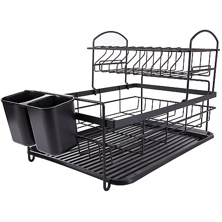 ДВУХЪЯРУСНАЯ СУШИЛКА ДЛЯ ПОСУДЫ С ПОДДОНОМ ЧЕРНАЯ