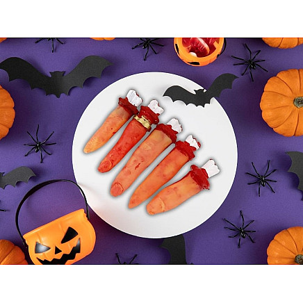 Искусственные отрубленные пальцы - идеальное украшение на Хэллоуин, которое обязательно привнесет жуткую атмосферу в любой интерьер. В набор входят пять резиновых пальцев с реалистичным видом, имитирующих отрубленные и окровавленные кончики. Изготовленные из гибкой нетоксичной резины, они безопасны в использовании и идеально подходят для создания сцен ужасов, украшения закусочных столов или в качестве реквизита для костюмов.