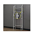 The design includes three plastic hooks, which are ideal for hanging towels or clothes. On the other side is a space for toilet paper, saving even more space in the bathroom.