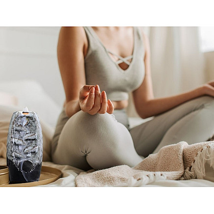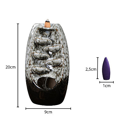 The elegant ceramic scented fireplace in the form of a waterfall is the perfect way to bring a relaxing atmosphere to your interior. Its unique design allows for a striking diffusion of smoke that flows down like a waterfall, creating a mesmerising and calming sight. It comes with 10 conical incense sticks (wicks) that release pleasant aromas, ideal for meditation, relaxation or aromatherapy.