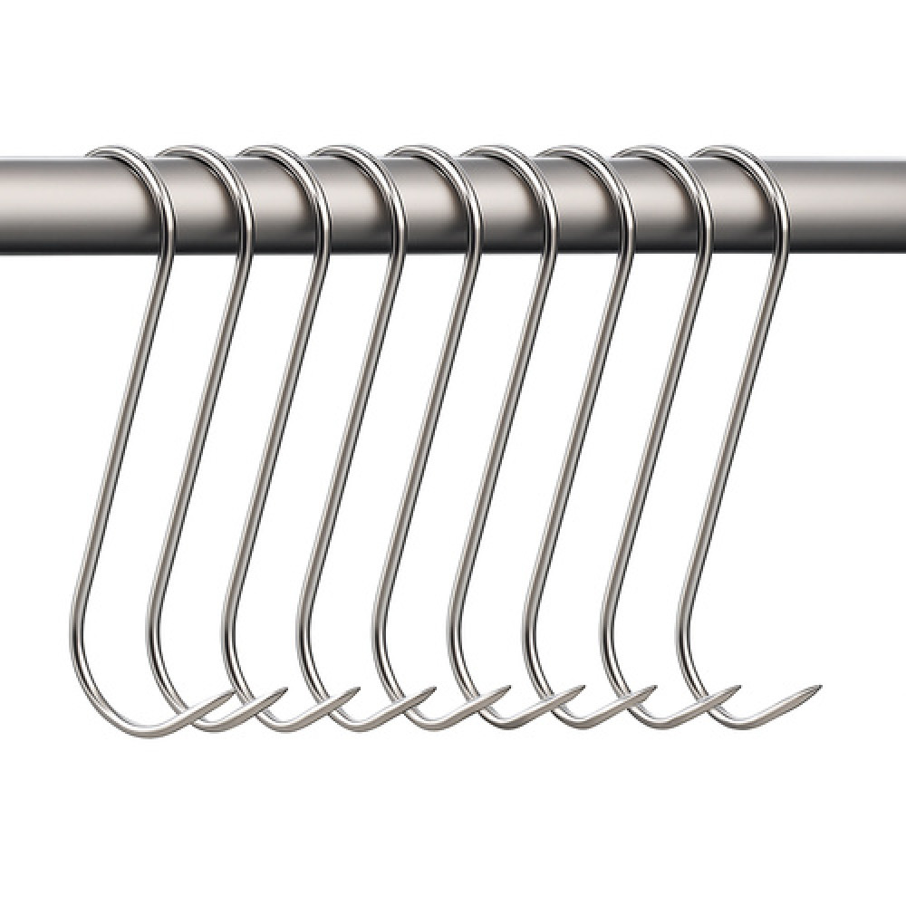 - острый, S-образный - удобство использования - каждый крючок для курения имеет кончик облегчает прокалывание мяса или рыбы , а благодаря контурной форме «S» - устойчиво висит на стержне коптильни