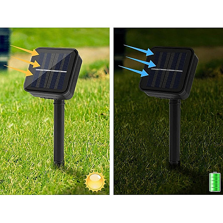 Garden Girland оснащен интеллектуальным датчиком сумерек и рассвета, поэтому вам не нужно беспокоиться о включении и выключении света. С наступлением темноты свет включается автоматически, создавая удивительную атмосферу А утром, когда рассветет, они выключаются, экономя электроэнергию. Это очень удобное и не требующее особых хлопот освещение.
