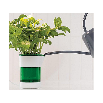 Горшок поливается самостоятельно благодаря продуманному хлопковому фитилю, который забирает нужное количество воды из резервуара, расположенного под ним, так что ваши растения всегда будут политы, даже когда вас нет рядом.