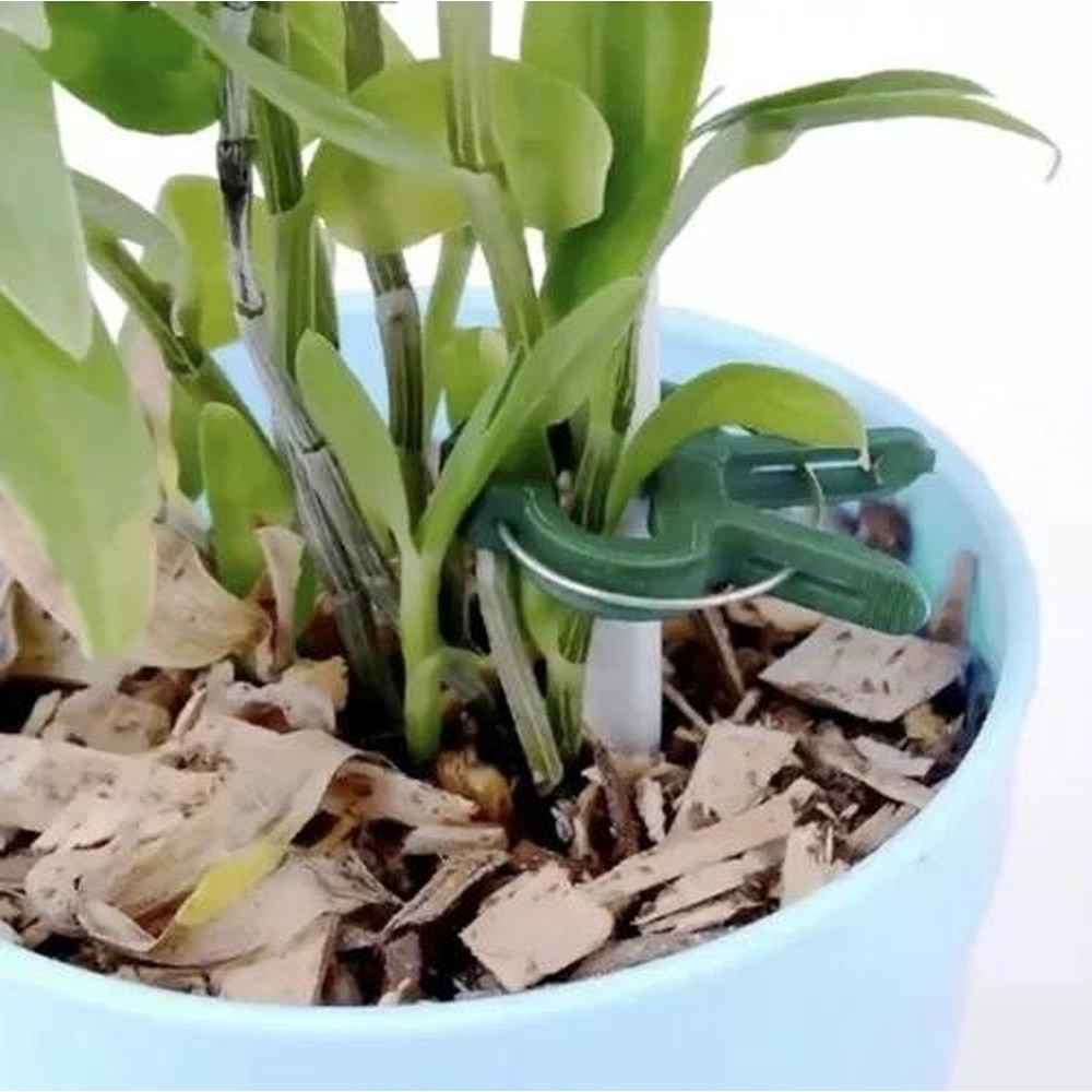 Зажимы для растений, также называемые зажимами для растений или опорными зажимами, представляют собой небольшие пластиковые инструменты, используемые для поддержки растений в садах, теплицах или на фермах по выращиванию горшечных растений. Они имеют форму зажимов, с одной стороны имеют защелки или крючки, которыми можно прикрепиться к растению, а с другой стороны имеют плоскую часть, удерживающую растение в нужном положении.