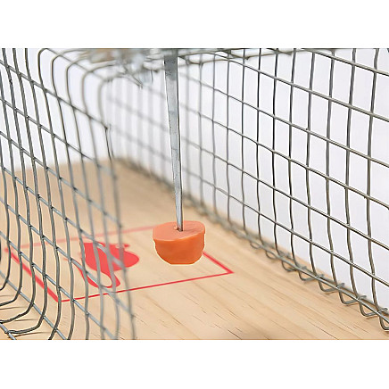Когда грызун войдет и коснется приманки, механизм разблокирует замок и дверца автоматически закроется.