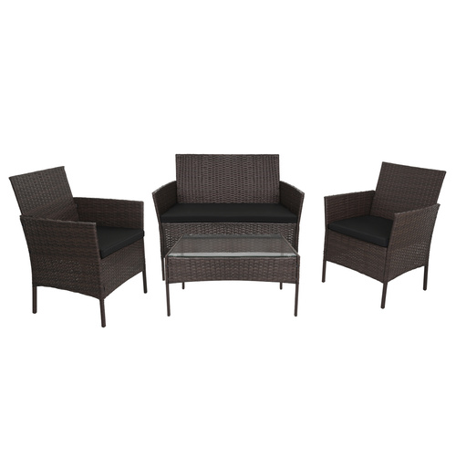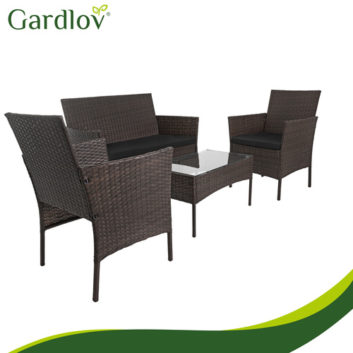 Садовая мебель Gardlov из коричневого технораттана: комплект из 2 стульев, дивана, стола со стеклянной столешницей и подушек.