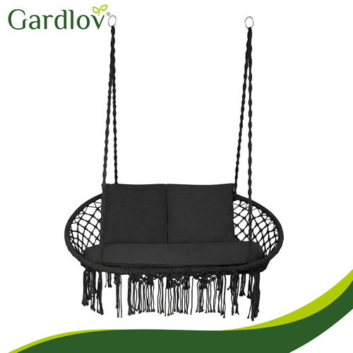 Двойные черные качели Gardlov «гнездо аиста» — 300 кг, двухместное подвесное кресло + 3 подушки, отдых для всей семьи.