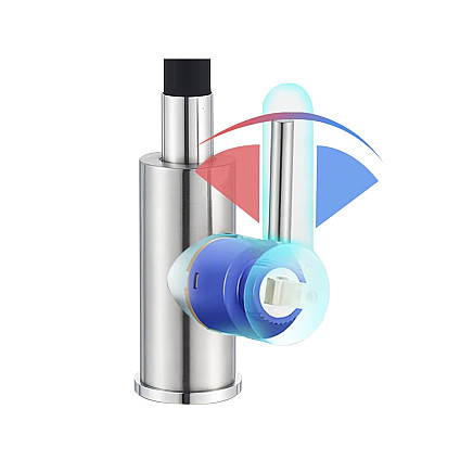 Современный смеситель для кухни с гибким изливом - идеальное решение для любой кухни. Благодаря гибкой конструкции вы можете свободно регулировать направление потока воды, что облегчает ополаскивание посуды, овощей или наполнение кастрюль. Кроме того, поворотная конструкция на 360° обеспечивает полную мобильность - идеальноерешение для одинарных и двойных моек.