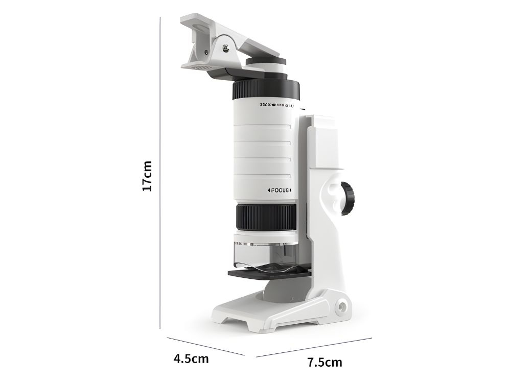 ПРОСТАЯ УСТАНОВКА НА ТЕЛЕФОНСпециальный зажим для смартфона позволяет быстро закрепить микроскоп на камере телефона. Благодаря этому вы можете делать фотографии и снимать видео наблюдаемых объектов, что отлично подойдет для обучения и документирования открытий.