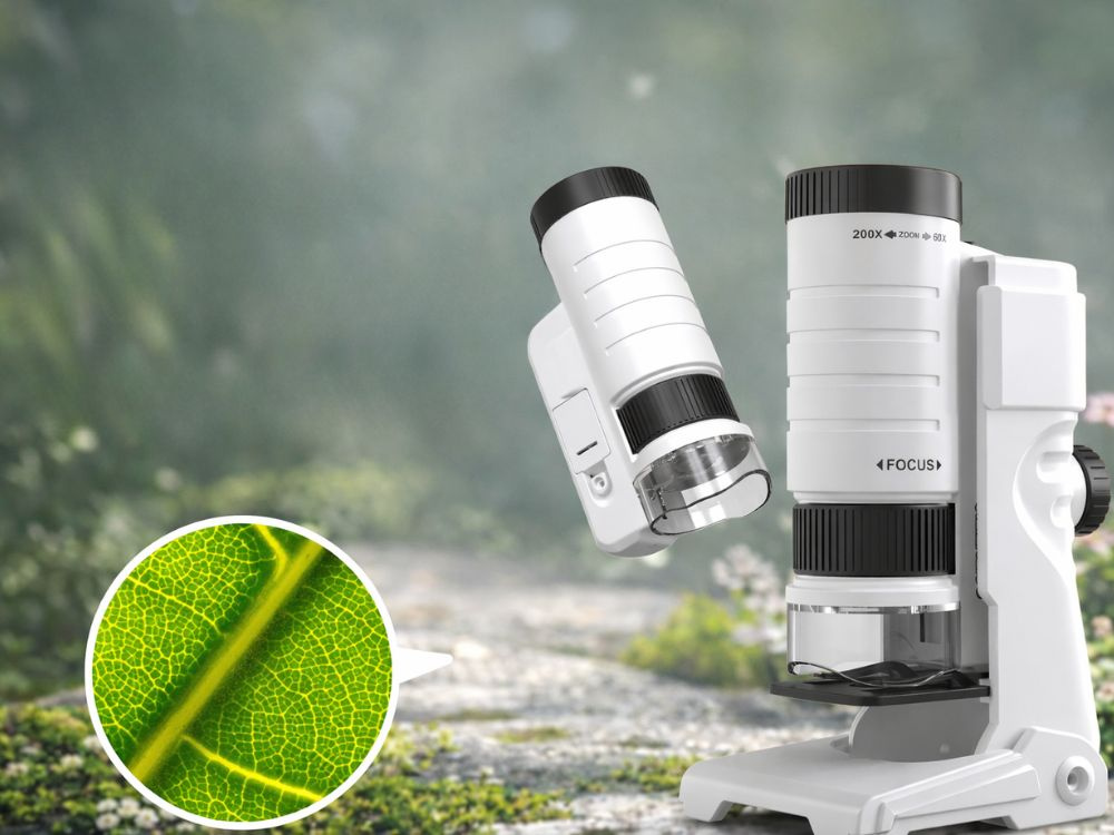 Микроскоп позволяет точно наблюдать за очень мелкими деталями, такими как структура листьев, насекомые, минералы или электронные компоненты. Увеличение 200x позволяет увидеть детали, невидимые невооруженным глазом.