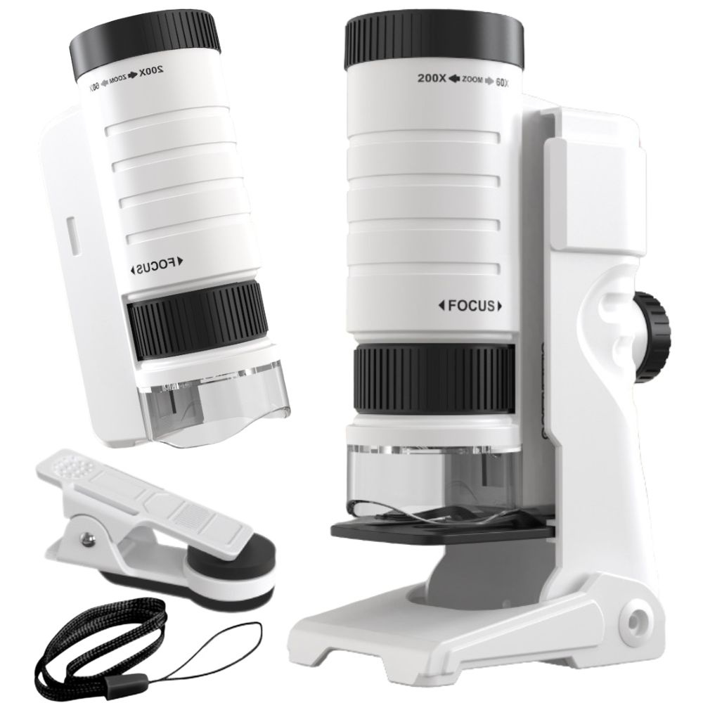 КОМПАКТНЫЙ МИКРОСКОП-ЛУПА С КЛИПСОМ ДЛЯ МОБИЛЬНОГО ТЕЛЕФОНА, 200-КРАТНОЕ УВЕЛИЧЕНИЕ, СВЕТОДИОДНАЯ ПОДСВЕТКА, УФ-ФУНКЦИЯ БОЛЬШОЕ УВЕЛИЧЕНИЕ ОТ 50x ДО 200x