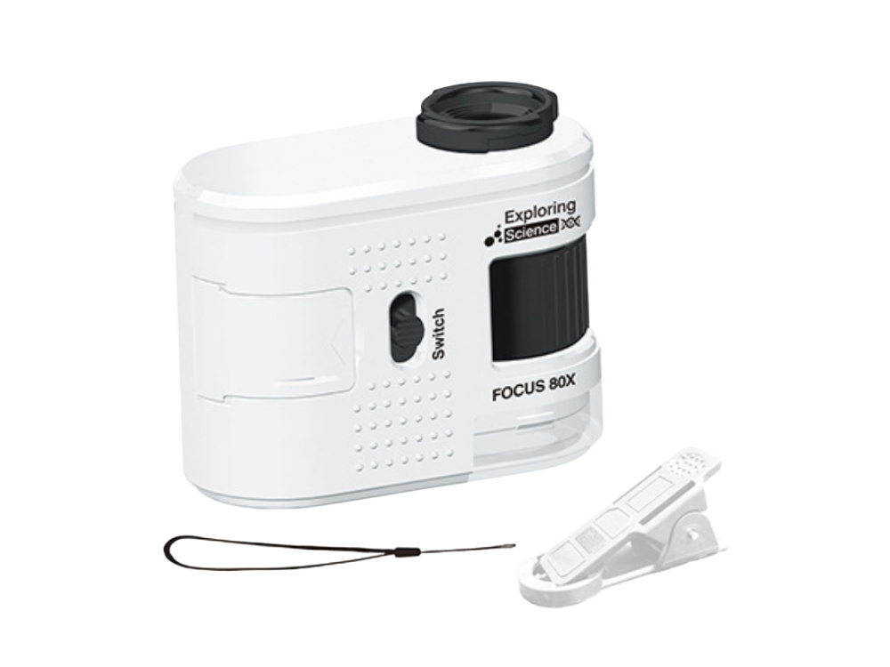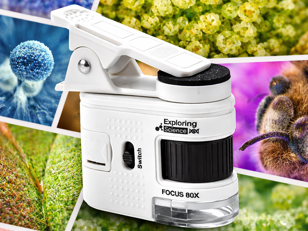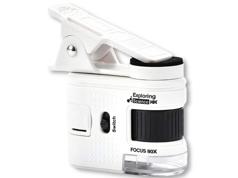 Это портативное устройство, которое крепится к телефону и позволяет наблюдать мелкие детали с большим увеличением. Благодаря 80-кратному увеличению вы с легкостью увидите структуру бумаги, детали монет, растений, тканей или мелких технических элементов.