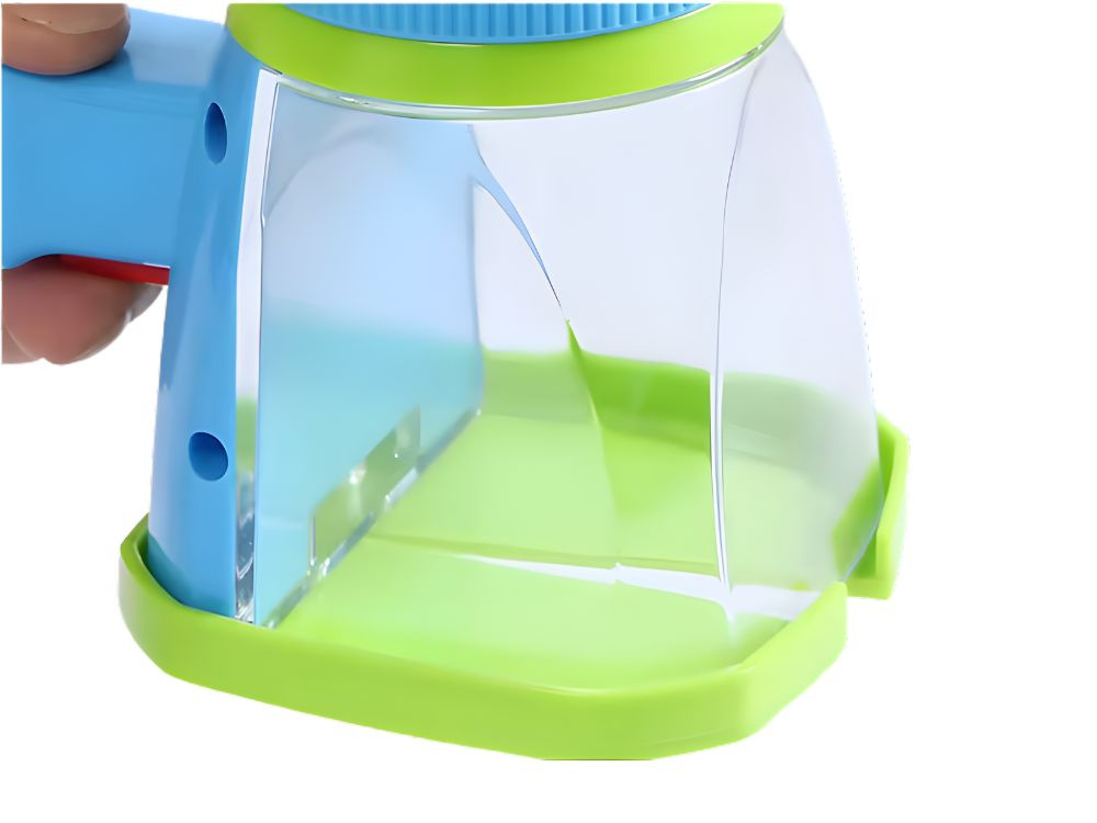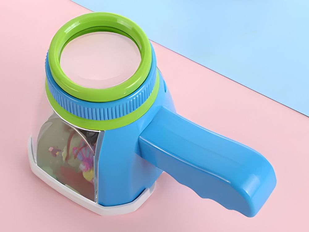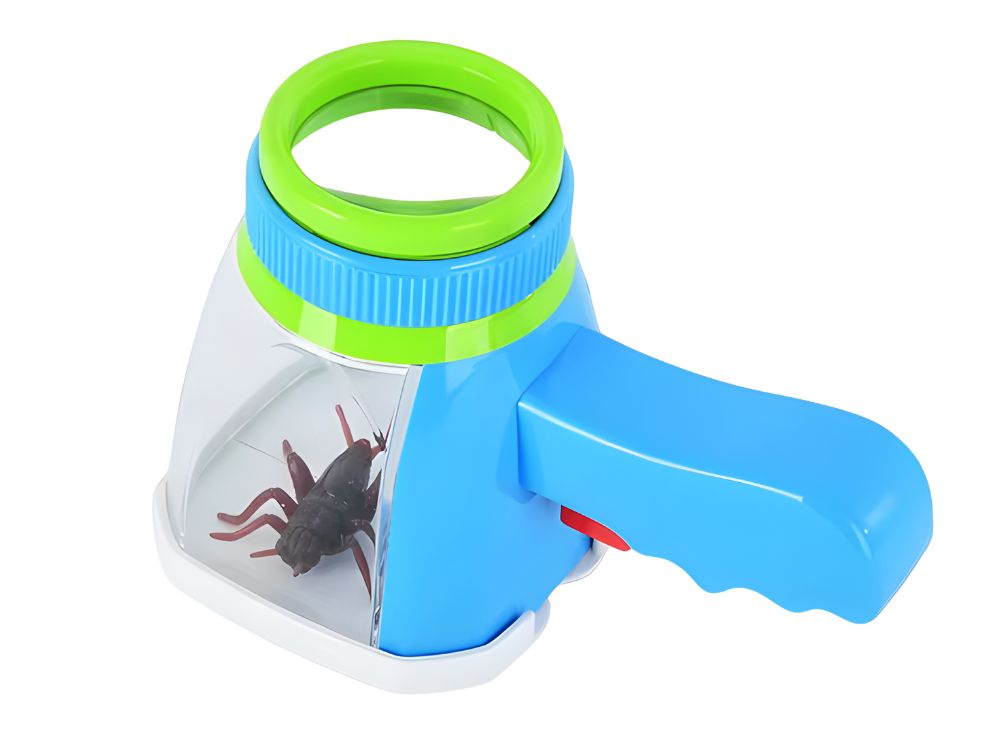 Практичная лупа для детей, позволяющая рассматривать насекомых и мелкие предметы вблизи. Благодаря прозрачному контейнеру можно безопасно поместить насекомое внутрь и внимательно наблюдать за ним через увеличительное стекло, расположенное в верхней части устройства.