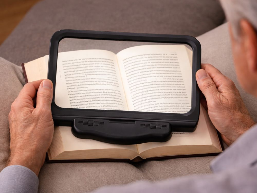 Лупа с большой рабочей поверхностью позволяет удобно читать без необходимости постоянного перемещения. Идеально подходит для книг, газет, инструкций и работы с мелкими деталями.
