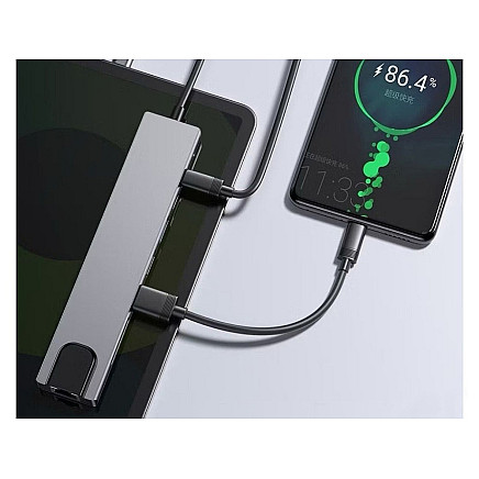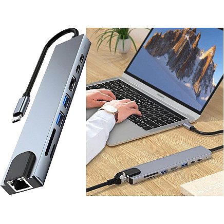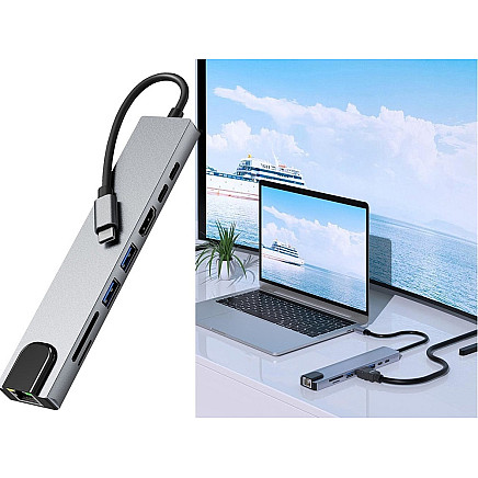 Современность и функциональность в одном устройстве! Наш USB-C HUB 8 в 1 - идеальное решение для тех, кому нужно расширить возможности ноутбука, планшета или смартфона с портом USB-C. Гладкая металлическая конструкция обеспечивает долговечность и современный внешний вид, который идеально впишется в любой стол или домашний офис.