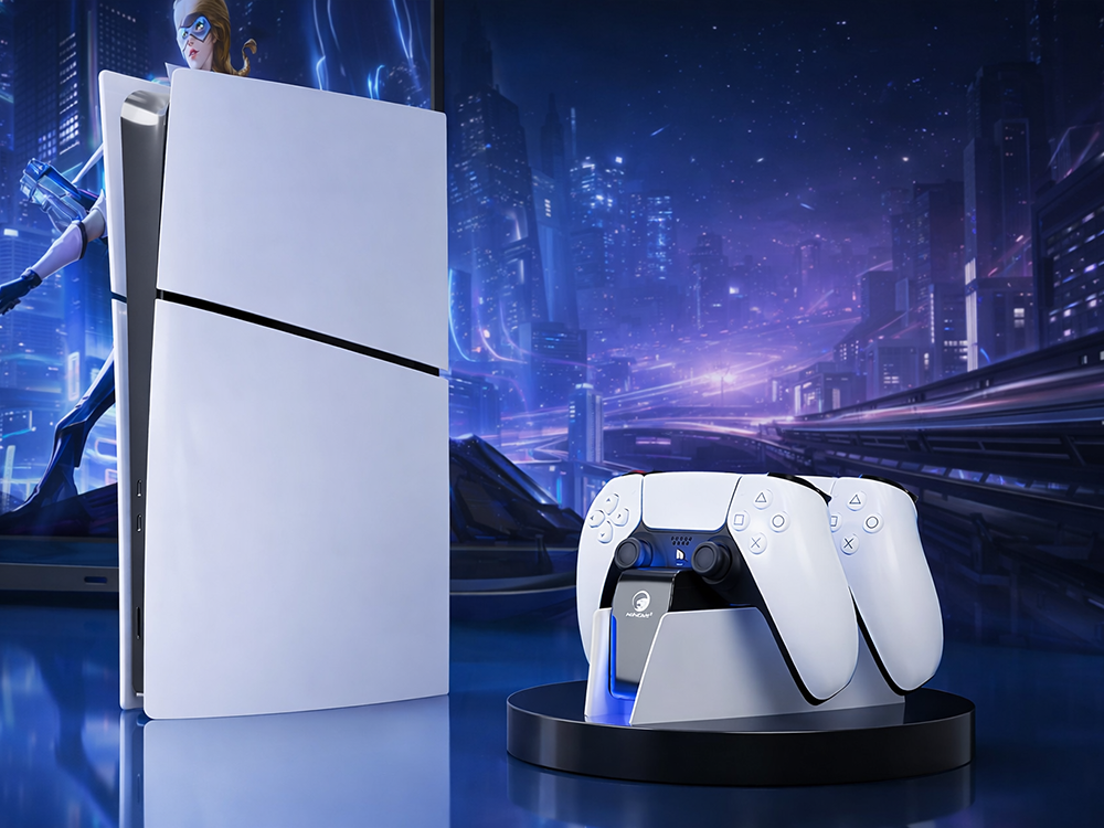 Современная зарядная станция для контроллеров PlayStation 5 позволяет быстро и удобно заряжать два контроллера DualSense одновременно. Благодаря конструкции, адаптированной к контроллерам PS5, достаточно просто поместить контроллеры в станцию, и зарядка начнется автоматически через контактные разъемы. Это решение устраняет необходимость использования множества кабелей и позволяет поддерживать порядок в игровом пространстве.