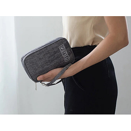 ПРОЧНАЯ КОНСТРУКЦИЯ И УСТОЙЧИВОСТЬ К ПРОЛИВАНИЮОрганайзер изготовлен из прочного, брызгозащищенного материала, который защищает содержимое от пыли, влаги и случайных повреждений. Кроме того, жесткие стенки и прочная молния гарантируют безопасность даже в переполненной сумке или рюкзаке. Снаружи имеется удобный держатель для запястья - удобно носить всегда под рукой.