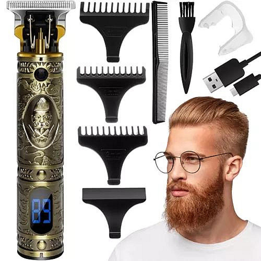 Precision Blue-LCD Hair & Beard Trimmer - универсальная, высоконадежная и тихая машинка для стрижки с уникальным старым дизайном и супер острыми лезвиями + 3 насадки для домашнего и салонного использования