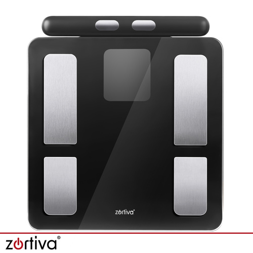 Аналитические напольные весы, измерение ИМТ и содержания жира, польское применение, ручка. Польская марка ZORTIVA — весы высочайшего качества. Аналитические напольные весы ZORTIVA Bluetooth для измерения ИМТ, веса, жира, мышц, воды и костей - стеклянные.