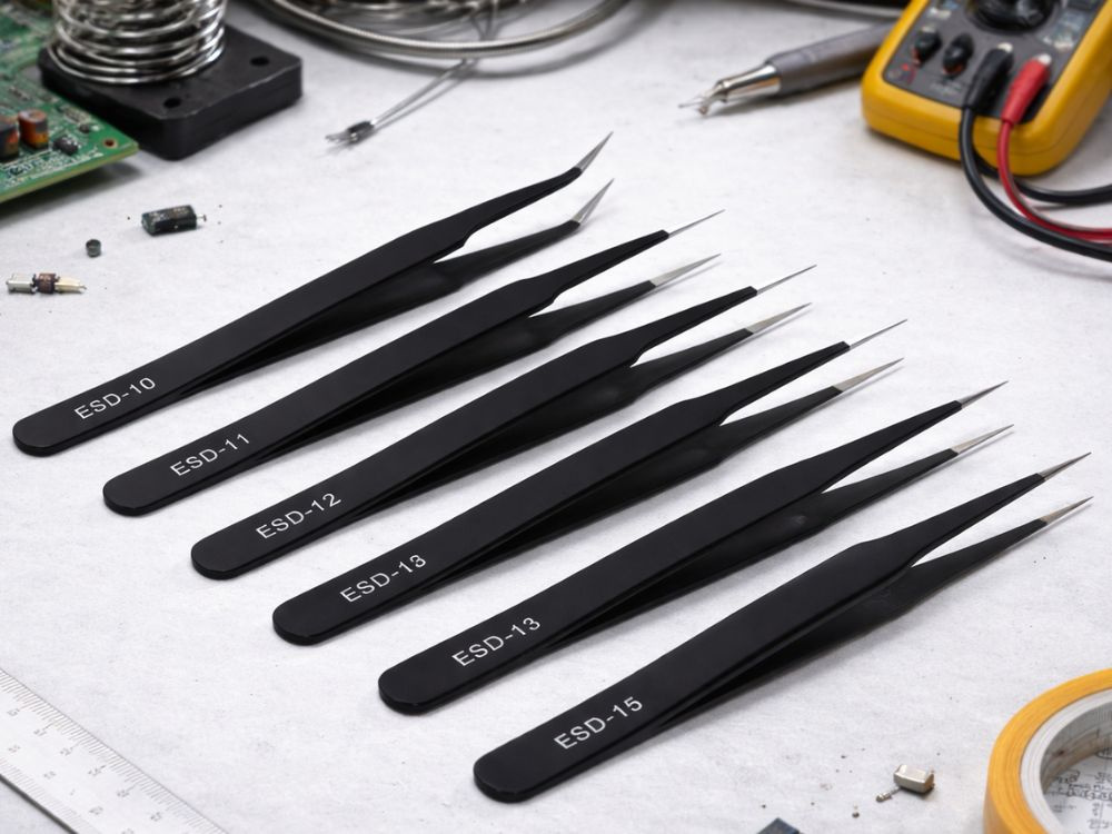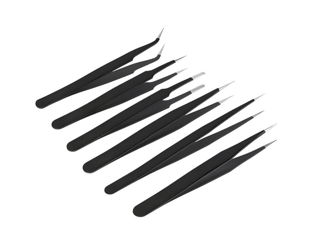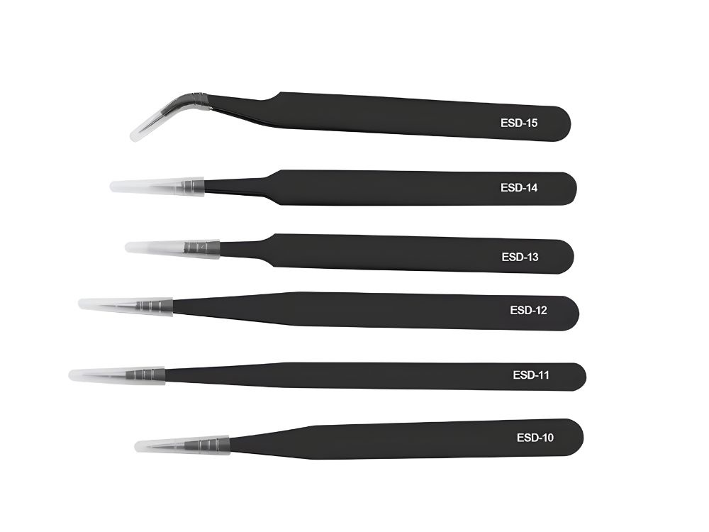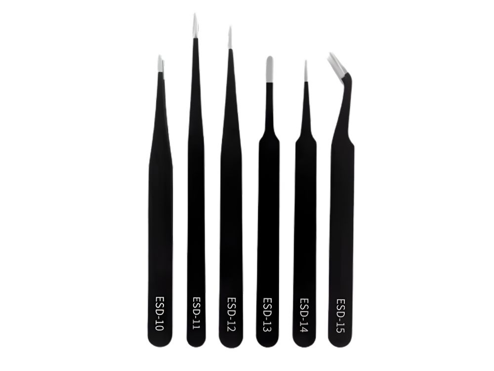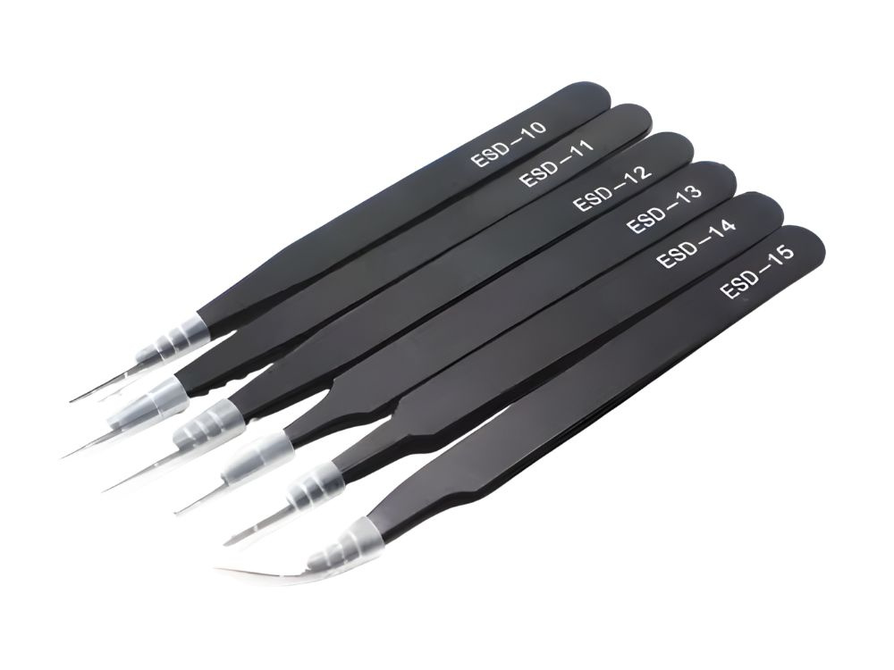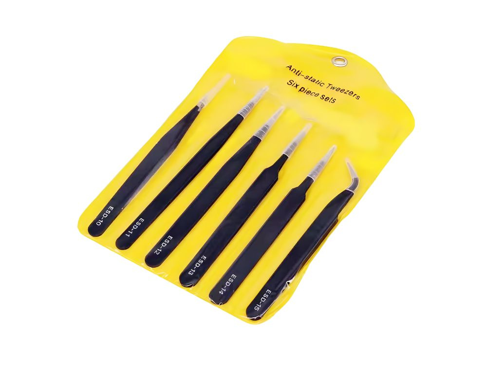 Профессиональный набор из 6 прецизионных пинцетов, предназначенных для работы с мелкими элементами и компонентами. Идеально подходят для ремонта электроники, пайки SMD-компонентов, моделирования, часового дела и ювелирного дела. Различные формы наконечников позволяют подобрать инструмент для конкретной задачи и обеспечивают полный контроль над элементом .