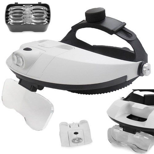 ПРОФЕССИОНАЛЬНАЯ НАГОЛОВНАЯ ЛУПА С 2-мя светодиодными лампами и сменными линзами 1x 1,5x 2x 2,5x 3,5x