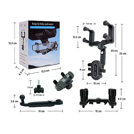 АВТОМОБИЛЬНЫЙ ДЕРЖАТЕЛЬ ТЕЛЕФОНА ДЛЯ ЗЕРКАЛА ЗАДНЕГО ВИДА ПОВОРОТНЫЙ РЕГУЛИРУЕМЫЙ УНИВЕРСАЛЬНЫЙ ДЕРЖАТЕЛЬ ДЛЯ ТЕЛЕФОНА - КРЕПЛЕНИЕ НА ЗЕРКАЛО ЗАДНЕГО ВИДА