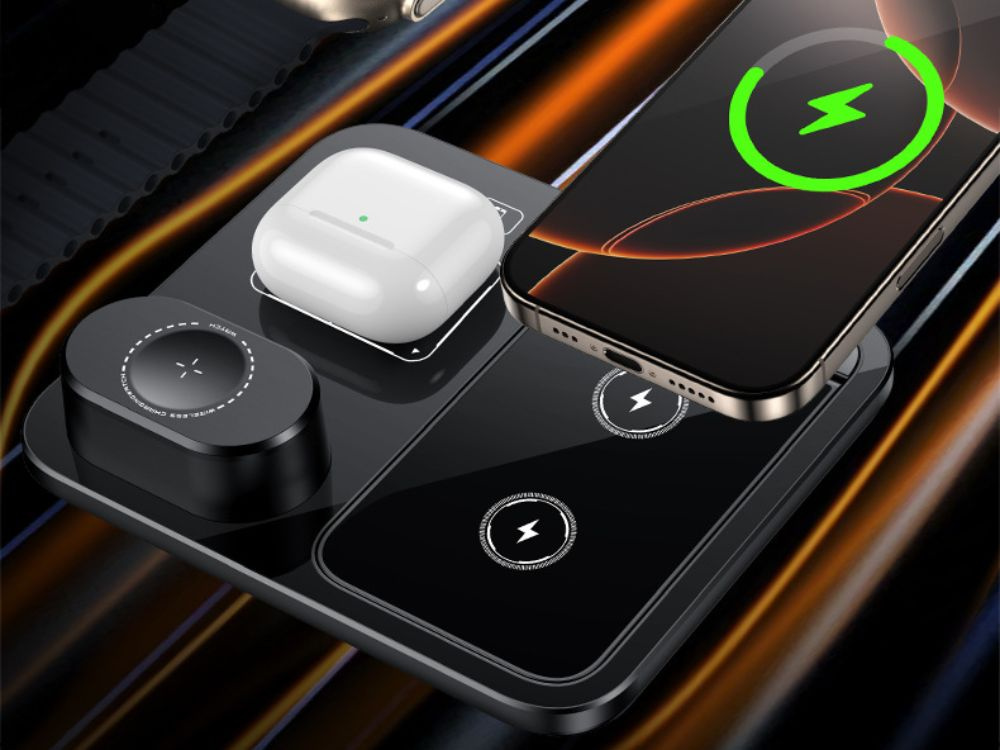 Быстрое беспроводное индукционное зарядное устройство 3-в-1 для часов, телефона и наушников