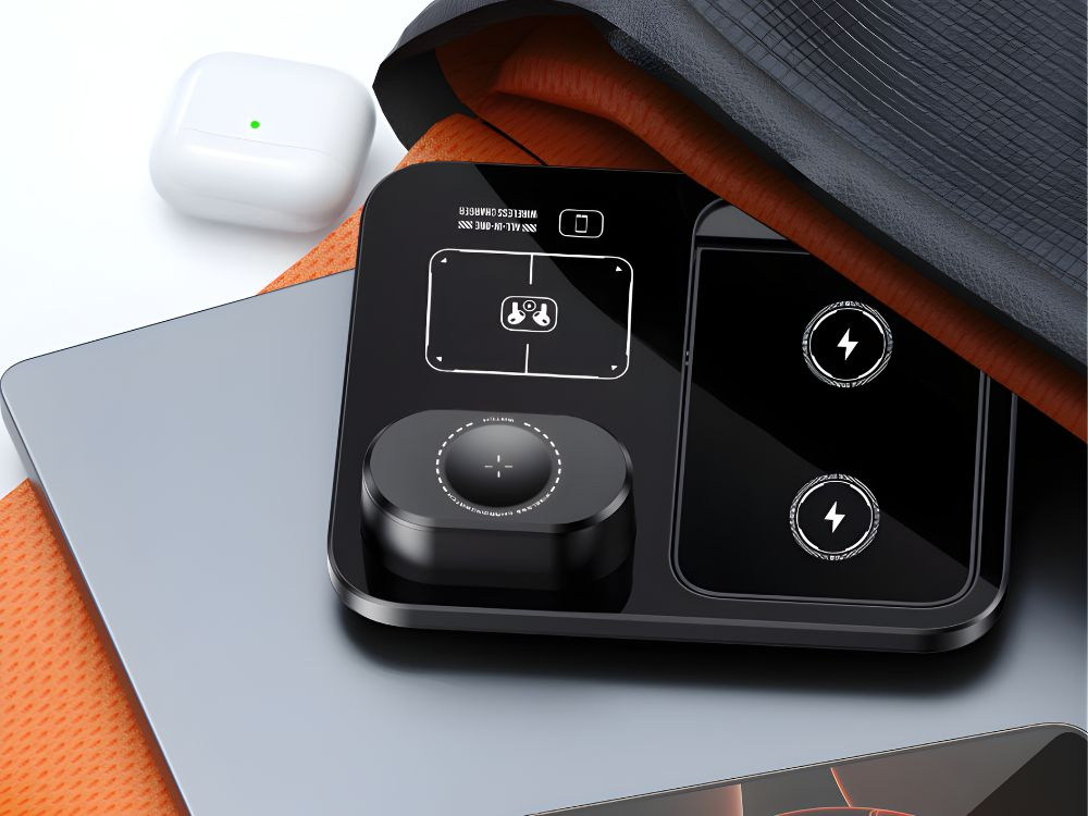 БЫСТРОЕ БЕСПРОВОДНОЕ ИНДУКЦИОННОЕ ЗАРЯДНОЕ УСТРОЙСТВО 3-В-1 ДЛЯ ЧАСОВ, ТЕЛЕФОНА И НАУШНИКОВ ОДНОВРЕМЕННАЯ ЗАРЯДКА ТРЕХ УСТРОЙСТВ