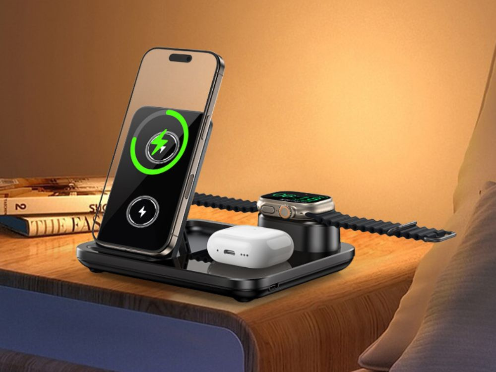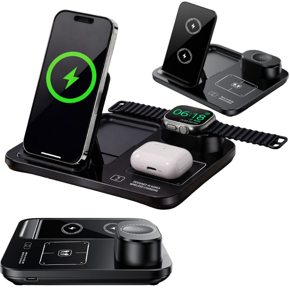 Док-станция позволяет одновременно заряжать смартфон, часы и беспроводные наушники. Это идеальное решение для тех, кто ежедневно использует несколько устройств. Все устройства можно заряжать в одном месте, без необходимости использования нескольких зарядных устройств.
