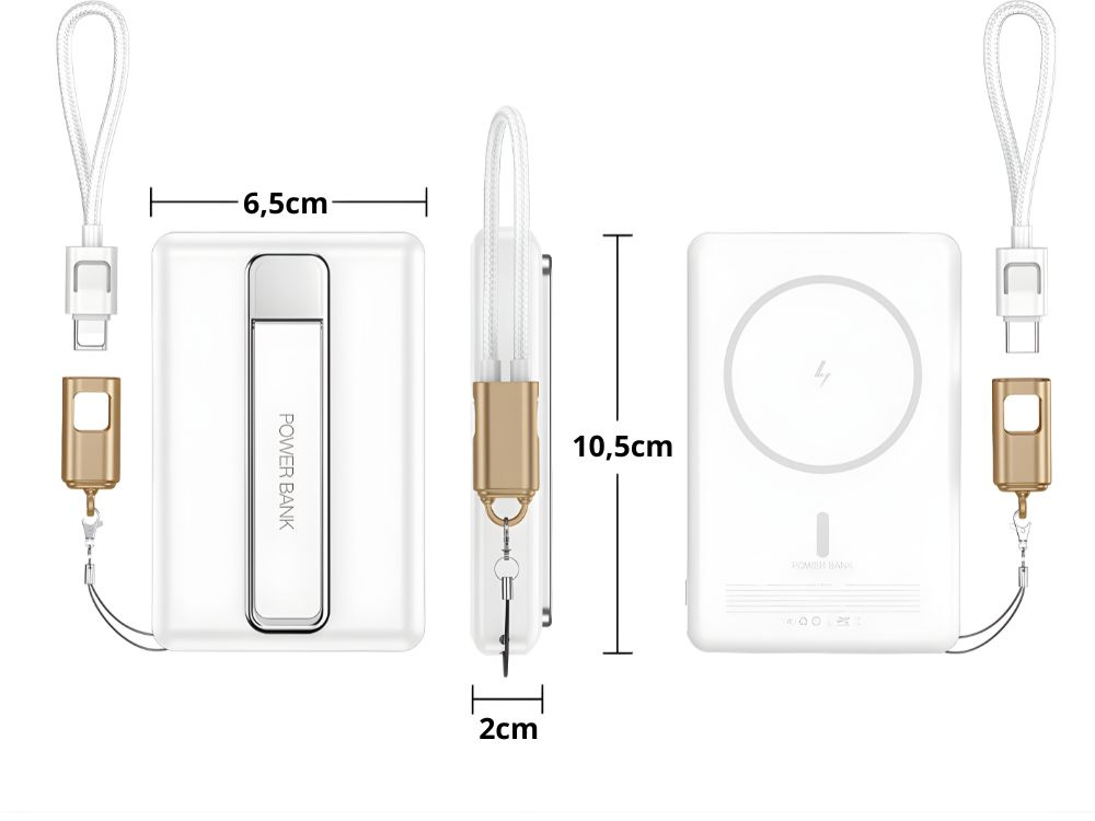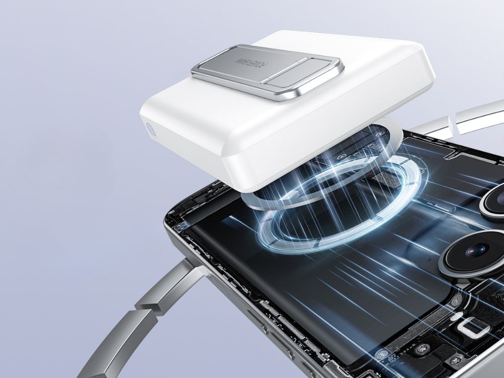 Компактный магнитный powerbank емкостью 10000 мАч позволяет удобно заряжать телефон как беспроводным, так и проводным способом. Благодаря встроенному магниту устройство надежно прилегает к задней части телефона, что позволяет заряжать смартфон даже во время его использования.