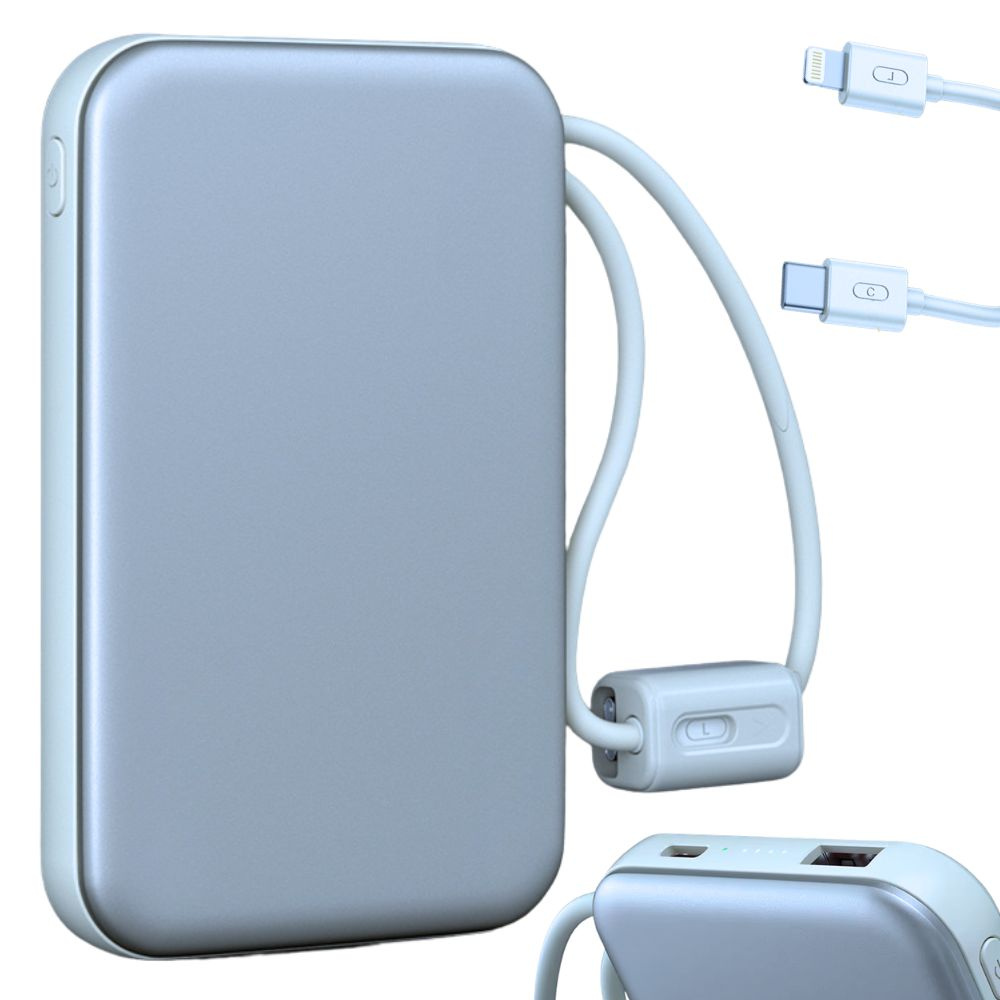 Компактная конструкция и практичный встроенный кабель Lightning и USB-C делают этот внешний аккумулятор идеальным решением для повседневного использования, путешествий, работы или учебы.