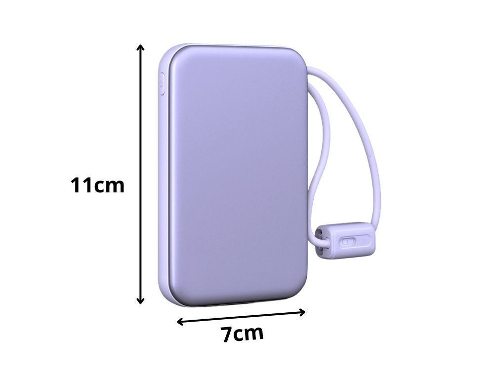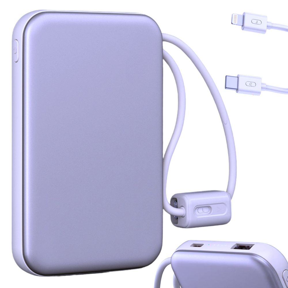 Компактная конструкция и практичный встроенный кабель Lightning и USB-C делают этот внешний аккумулятор идеальным решением для повседневного использования, путешествий, работы или учебы.